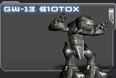 | Giant war machine that wreaks havoc with corrosive biological agents. A charge time of three turns is required between usage of this mech's special ability. |